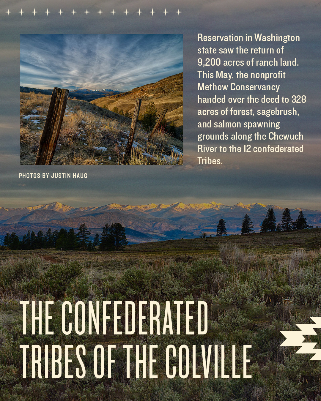 For this design, I worked with our branding and featured licensed images of sacred lands. This was a carousel for social media where I wanted to evoke the feeling of a magazine article or spread to inform our audience.